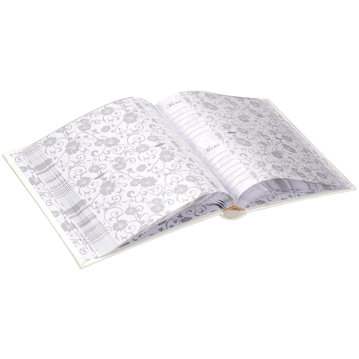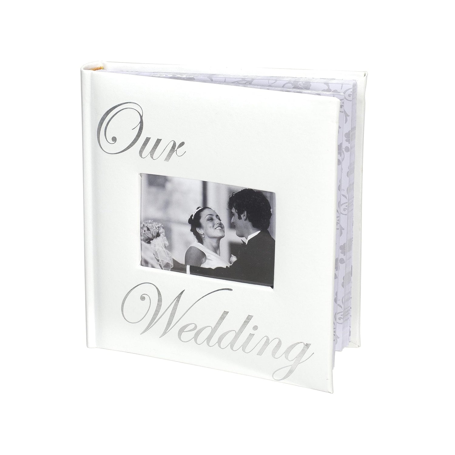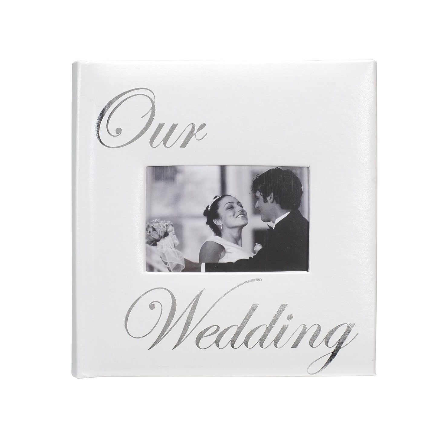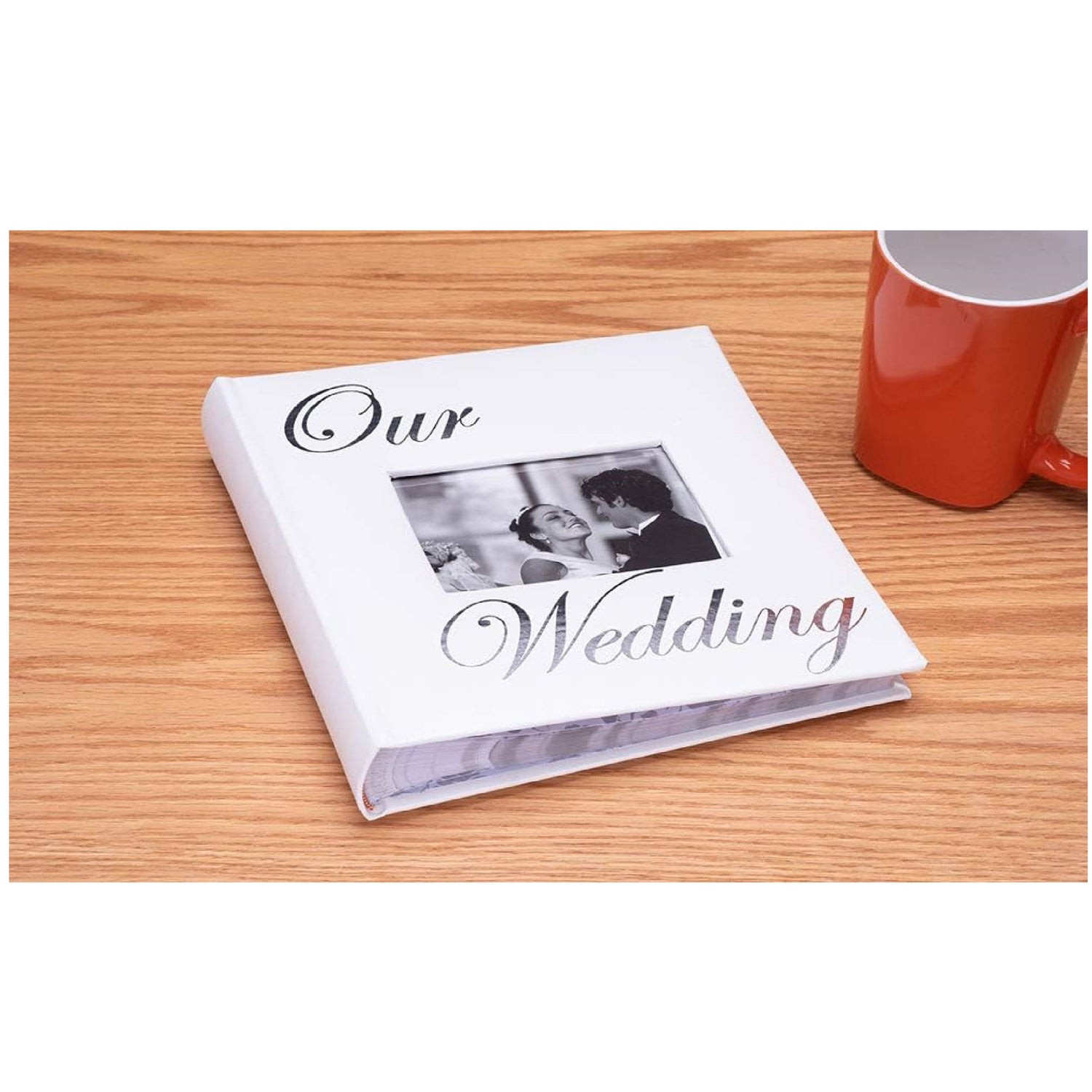 Embroidered OUR WEDDING album by Malden holds 200 photos - 4x6 No Sz : photo albums: The OUR WEDDING album is a terrific book for organizing a collection of "wedding story" pictures. Here - OUR WEDDING in white script lettering in fancy calligraphy. Displays 4 pictures at a time both sides when open . 100 acid-free and ligne-free the archival safe pockets provide secure space for 200 4"x6" or smaller prints. Frame front highlights your favorite photo. A convenient memo area is provided next to each photo against the binding for notes. Crafted by Malden maker of fine albums for generations.